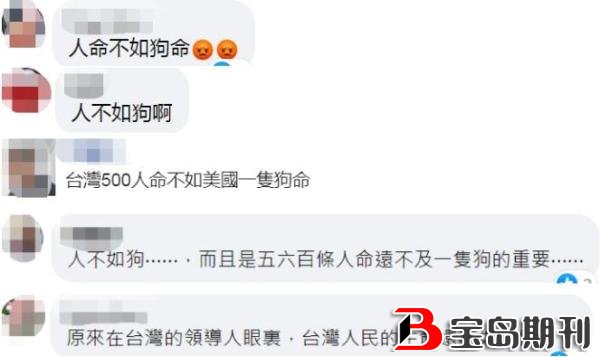 帖文一出,底下有不少島內(nèi)網(wǎng)友留言感慨:“人命不如狗命”、“臺(tái)灣500人命不如美國(guó)一只狗命。”↓